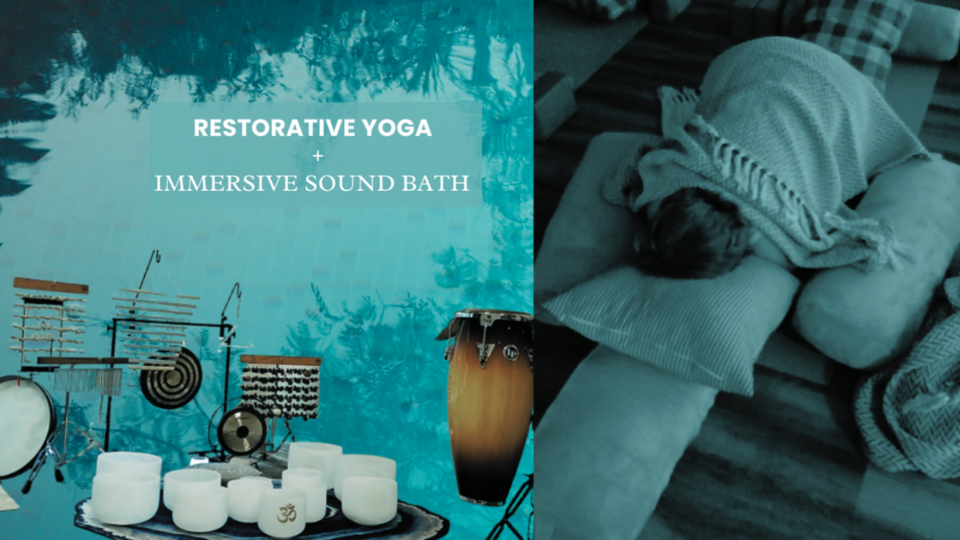 The session concludes with a therapeutic sound bath, using frequency and vibration to promote deep rest, balance, and full-body renewal.